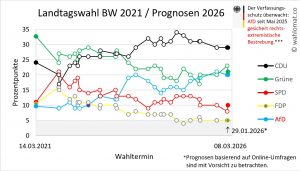 Wahlumfrage Baden-Württemberg: Letzte Wahlprognose vom 29.01.2026/INSA(NIUS)*: