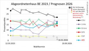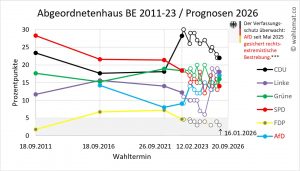 Wahlumfrage Berlin: Letzte Wahlprognose vom 16.01.2026/Infratest dimap (Stand 14.02.2026):