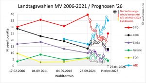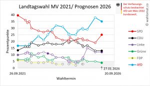 Wahlumfrage Mecklenburg-Vorpommern: Letzte Wahlprognose vom 27.01.2026/Infratest dimap (Stand 14.02.2026):