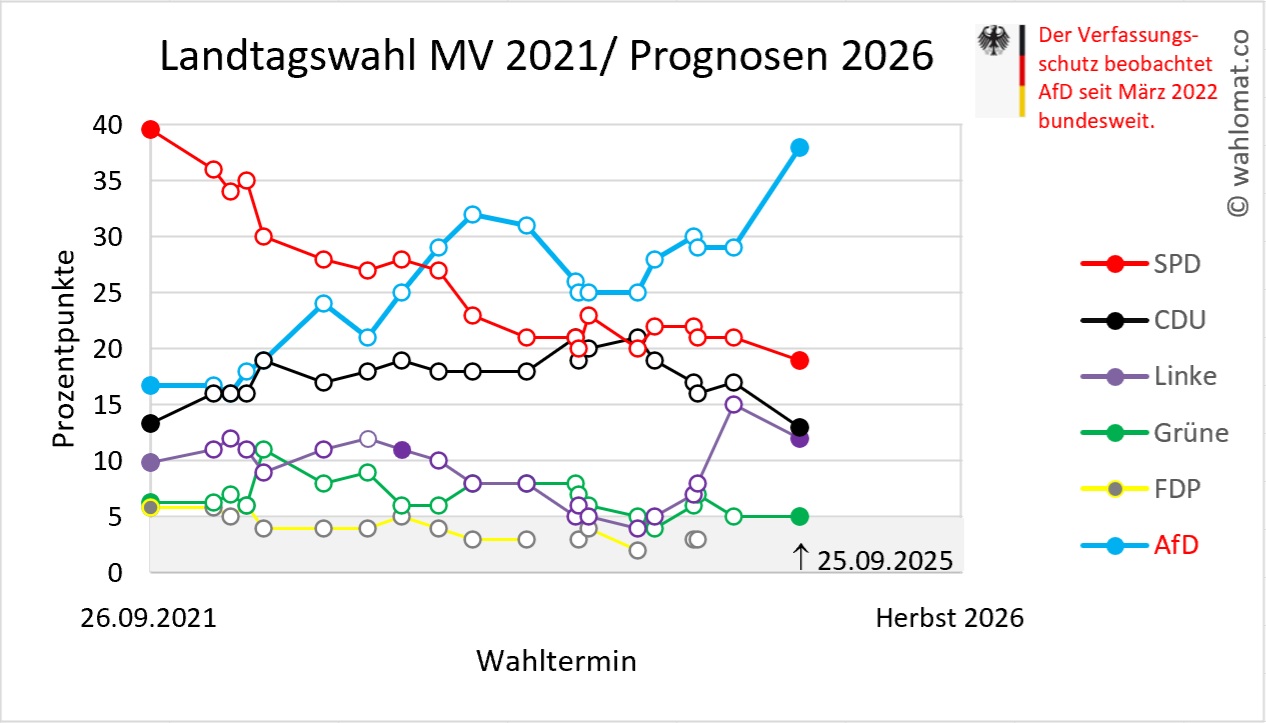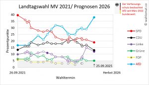 Wahlumfrage Mecklenburg-Vorpommern: Letzte Wahlprognose vom 25.09.2025/Infratest dimap (Stand 27.09.2025):